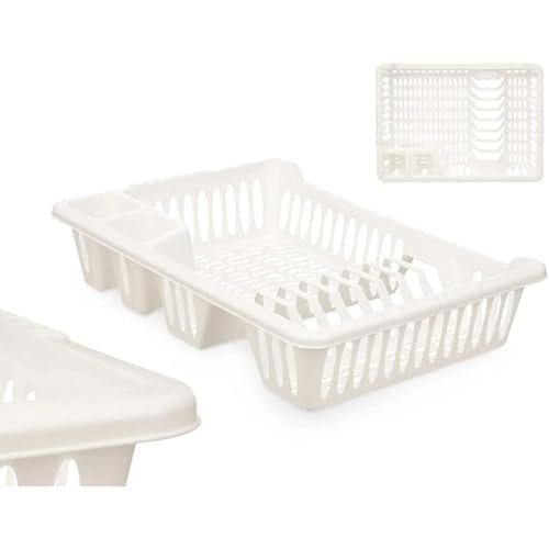 PARENCE. Diskställ i plast med XL-fack - förvaring av tallrikar, glas och bestick - kompakt diskställ 29,5 x 40 x 8 cm - snabbtorkande kök
