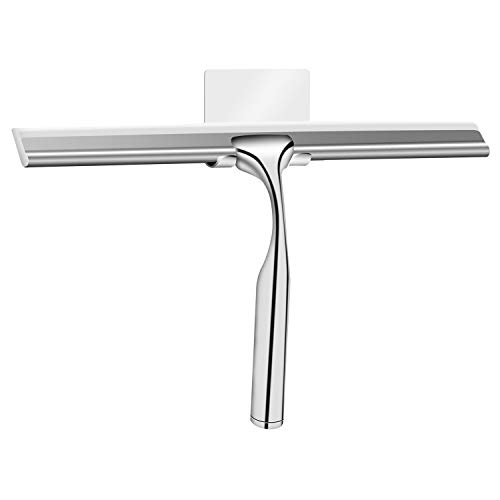 Duschskrapa rostfritt stål duschtorkare – 25 cm bred – utan borrning silikonskrapa dusch badrum duschvägg skrapa fönsterskrapa med krok badrumsavdragare