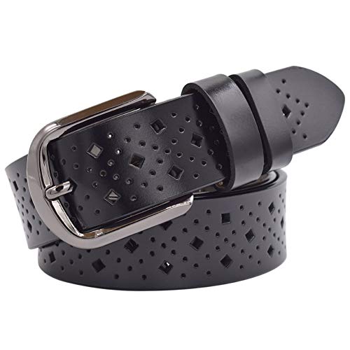 VONSELY Ihåliga läderbälten för kvinnor, mjukt läder dambälten med stiftspänne, 3,3 cm bred svart, Suit Waistline 25"-34"