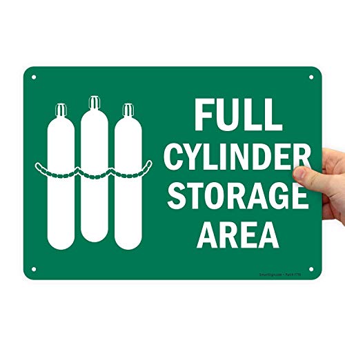 SmartSign aluminiumskylt, Legend "Full Cylinder Storage Area" med grafik, 25 cm hög x 35 cm bred, vit på grön