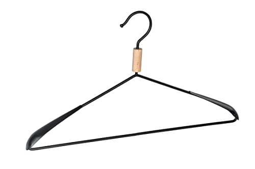 WENKO klädgalge Clara, formäkta bygel med bred axelhöjd, universalbygel i matt-svart loft, 42 x 3,5 x 25 cm av pulverlackerad metall och bokträ