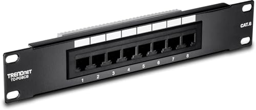 TRENDnet 8-portars Cat6 oskärmad rackmonterad patchpanel, 25 cm bred, 8 x Gigabit RJ-45 Ethernet-portar, TC-P08C6, svart