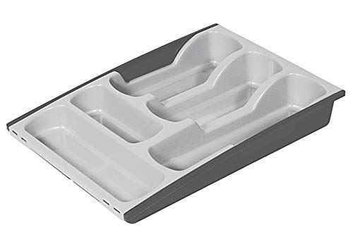 Relaxdays besticklåda, 5 fack, bestickförvaring, lådinsats, set om 2, bestick, plast, ca 4 x 25 x 33 cm, grå