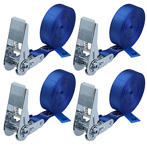 Spännrem med spärrrem uppsättning av 4 spärrbälte DIN EN 12195-2 blå 4 m eller 6 m, 25 mm bred – kan belastas upp till 800 kg, 4-pack 2,5 cm x 4 m