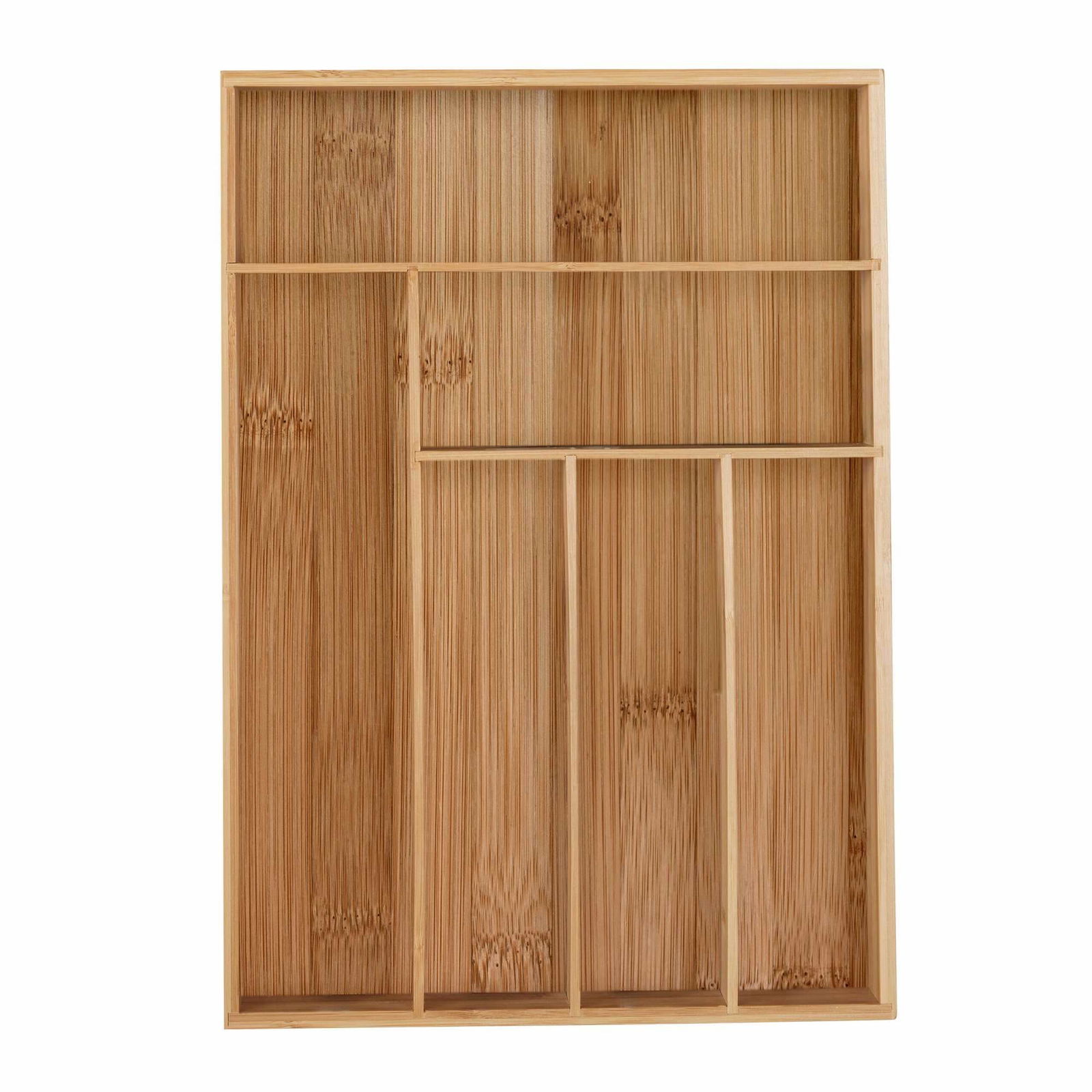 Relaxdays Besticklåda, 7 fack, bambu, lådlåda för bestick och köksredskap, HBT: 4,5 x 30,5 x 44,5 cm, natur, trä