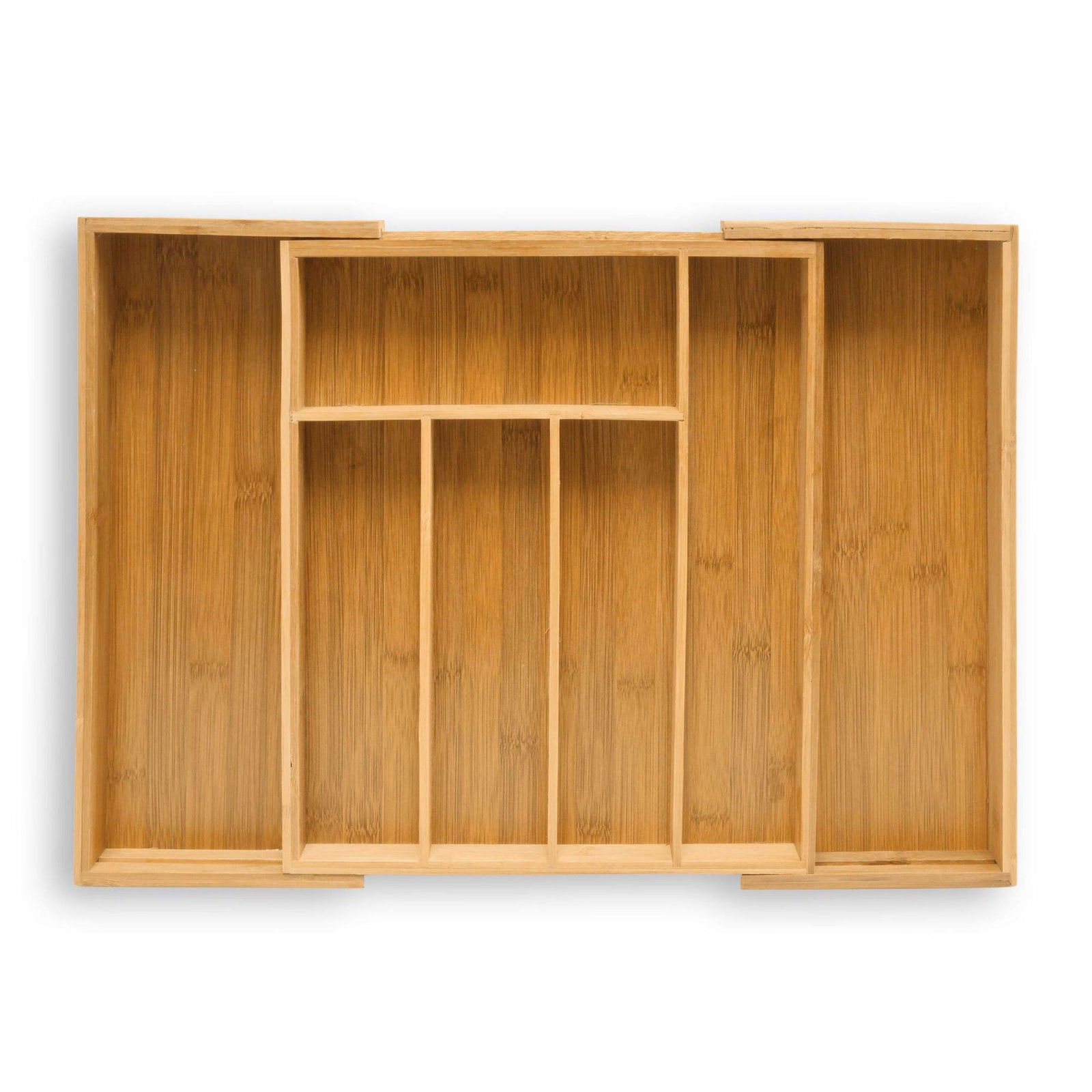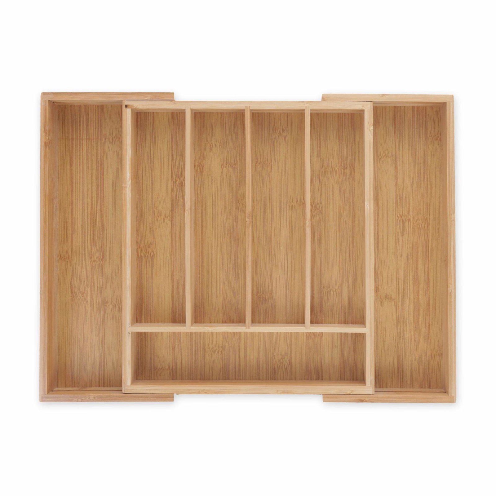 Relaxdays Besticklåda, utdragbar, 5–7 fack, H x B x D: 5 x 28,5 x 36 cm, kök, lådinsats, bambu, natur