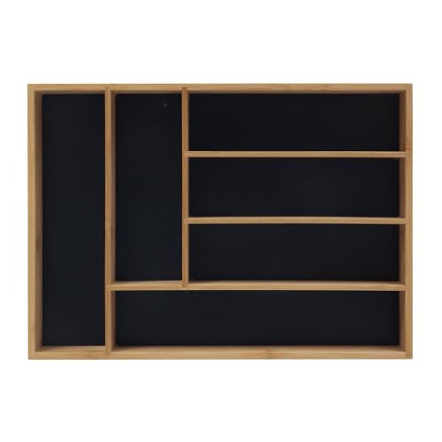 MASS DYNAMISK besticklåda organisatör, expanderbar bambu bestickbricka för köksredskap, justerbar bestick och bestickhållare, 7 spår förvaring för skedar gafflar knivar (svart)