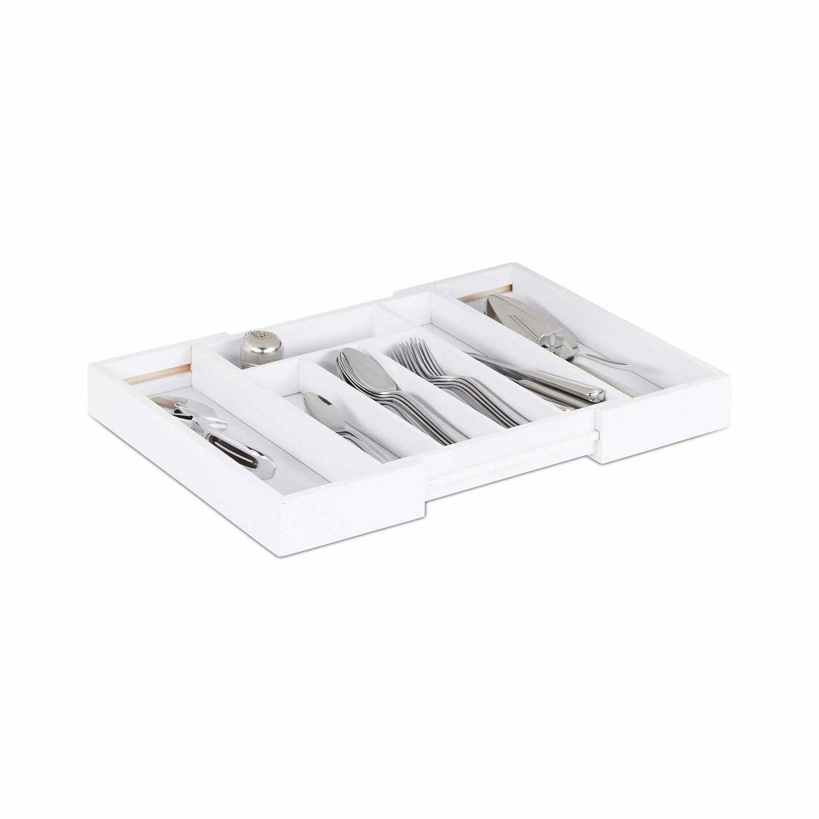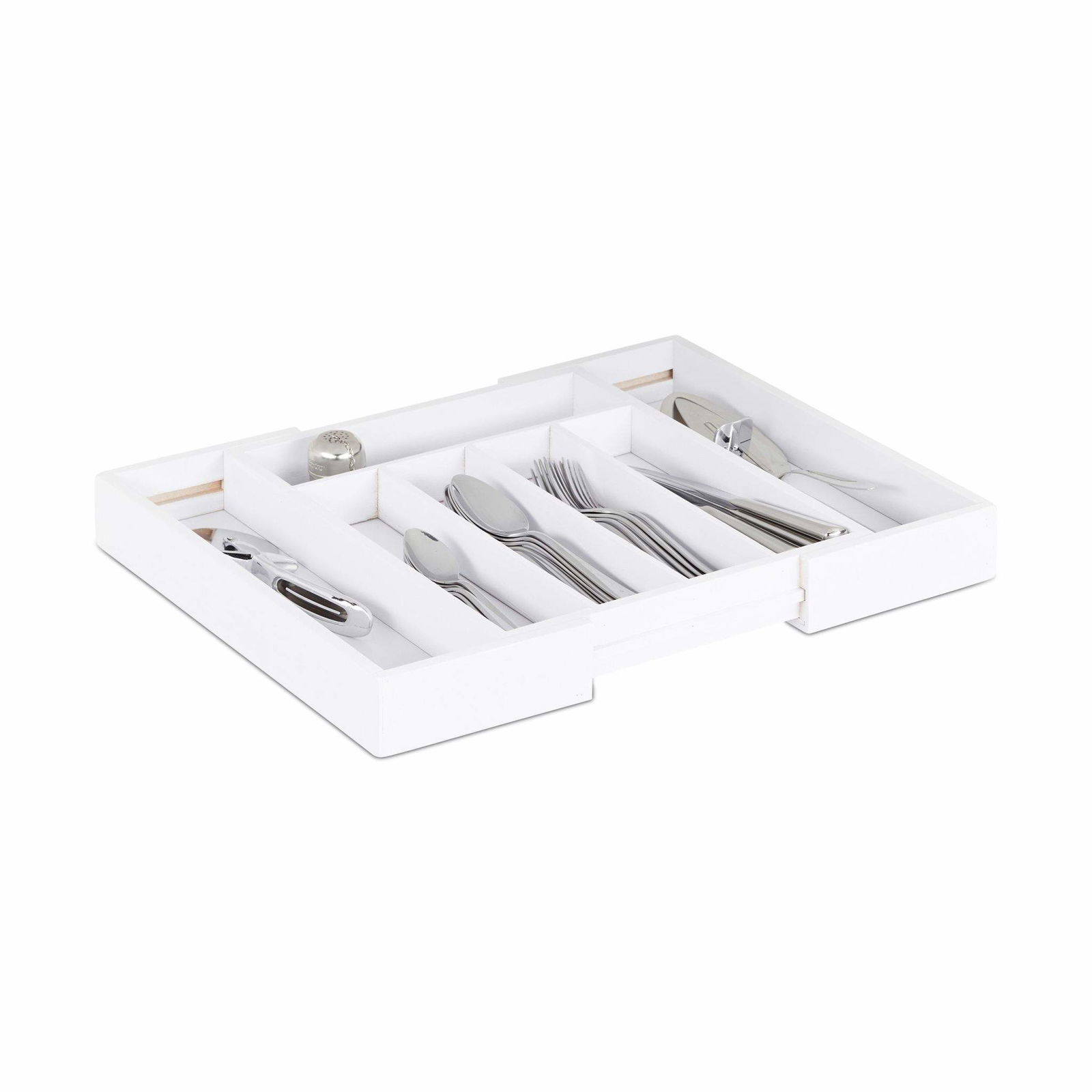 Relaxdays Besticklåda, utdragbar, 5 till 7 fack, lådförvaring, bambu & MDF, besticklåda, natur/vit