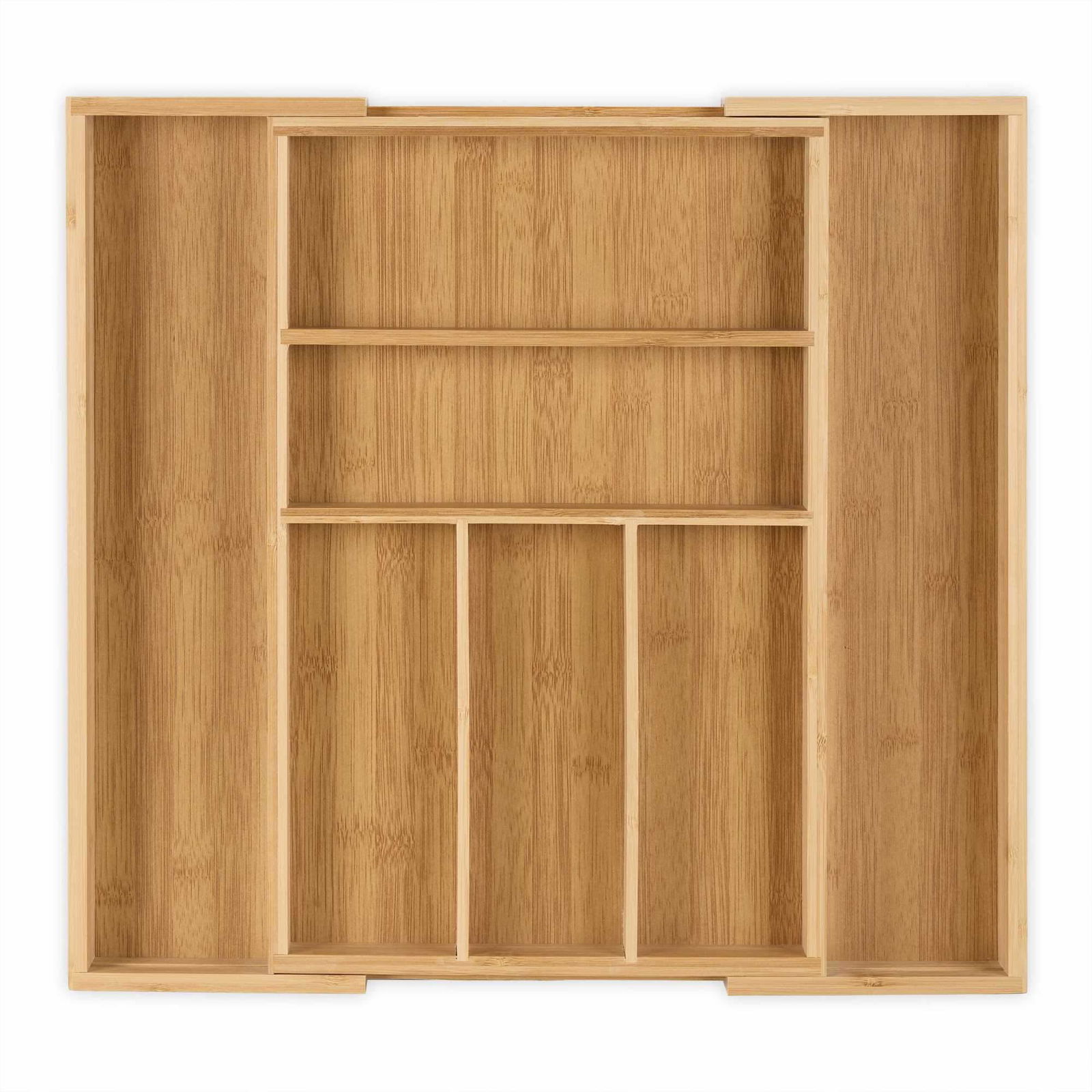 Relaxdays besticklåda utdragbar ca 5 x 48 x 46 cm, lådinsats i bambu med 5–7 fack, bestickinsats i trä, natur