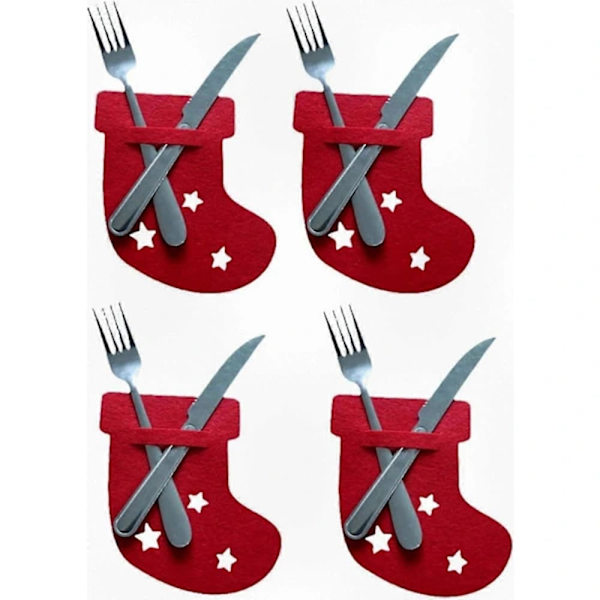 4 bestickset för juldagen, kreativa bestickställ för juldekoration, röda julbestick