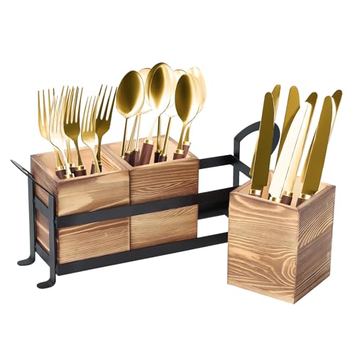 WPAJIRZO Rustik besticklåda 4 fack – bestickhållare trä – bestickställ för bestickförvaring – bestickbehållare för bord fest restaurang