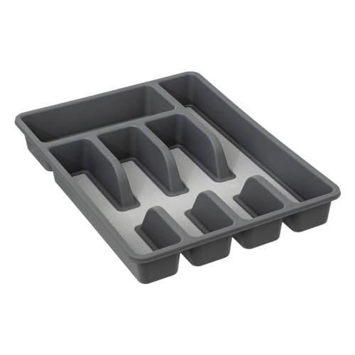 KOOSREEL Utdragbar redskapsbricka för låda, bestickställ, lådorganisatör för kök, plastförvaring för bestick, skedar, gafflar, osv, grå
