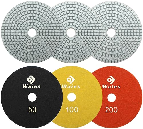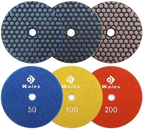 Waies 125 mm korn 50–100 diamantslipplatta för torrslipning kardborreband, för granit, sten, betong, marmor, golvslip eller polerare