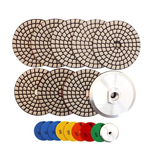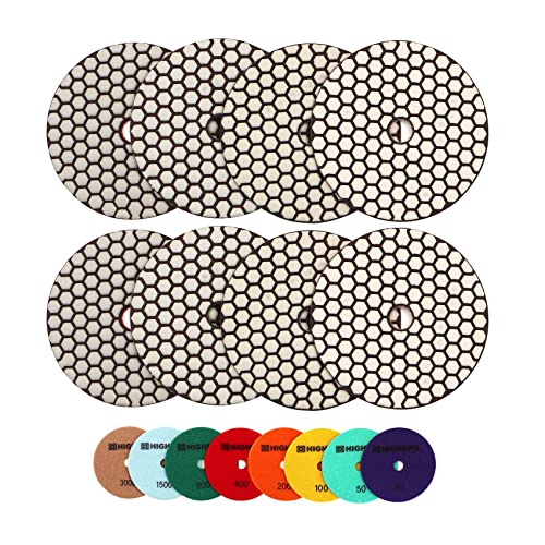 HIGHDRIL Torr diamant polerskiva 8 st. (#50 x 3/#100 x 2/#200/#400/#800) för granitsten betong marmor golvslip eller polering dia 100 mm / 4 tum (aluminium stödkuddar)
