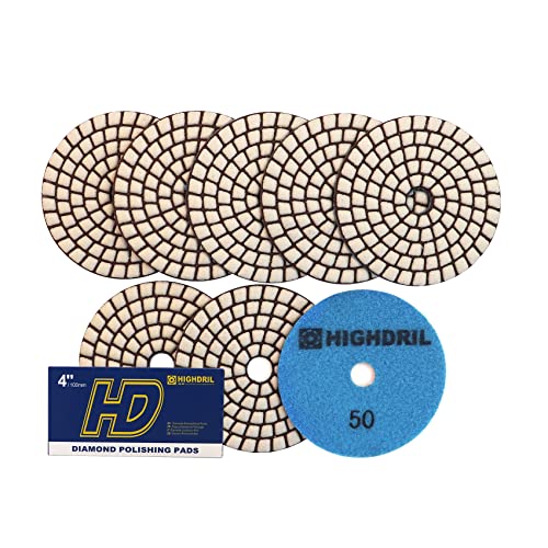HIGHDRIL Torr diamant poleringsskiva 8 st. #50 för granit, sten, betong, marmor, golvslip eller polering dia 100 mm (4 tum)