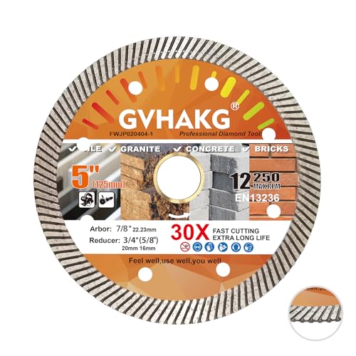 GVHAKG Diamantkapskiva 125 mm, turbo tunn diamant kapskivor för kakel porslin stengods granit, marmor betong, keramisk tegel, diamantskiva för vinkelslip (1 st.)
