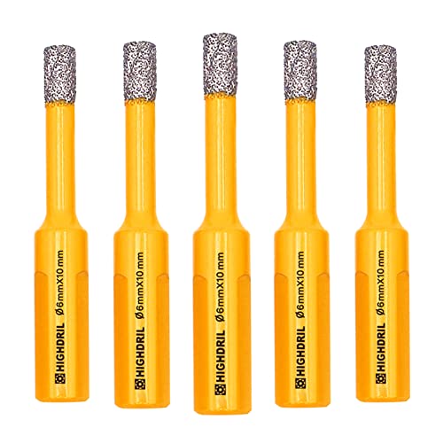 HIGHDRIL 5 st diamantkärna borrbit, diameter 6 mm vakuumlödd hålsåg för betong granit marmor glas porslin kakel murverk tegel, triangelskaft