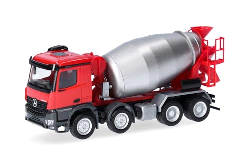 Herpa Lastbilsmodell Mercedes-Benz Arocs M betongbil 4-axlig, röd/silver, miniatyr i skala 1:87, samlarobjekt, Made in Germany, plast