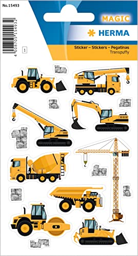 HERMA 15493 klistermärken, byggarbetsplatsfordon, små, 9 stycken, fordonsklistermärken med grävmaskin, kran, betongblandare, byggarbetsplatsmotiv, barnetiketter för fotoalbum poesialbum scrapbooking