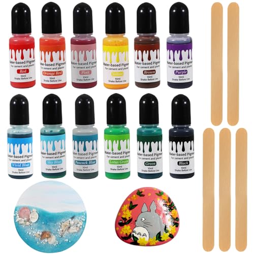 Suevut Färgpigment för gjutpulver, gjutpulverfärg 12 färger, lätt löslig med 5 blandpinnar, färg för gjutpulver, vattenbaserat pigment för betongfärg, gips, cementfärg, gör-det-själv-hantverk, 10 ml
