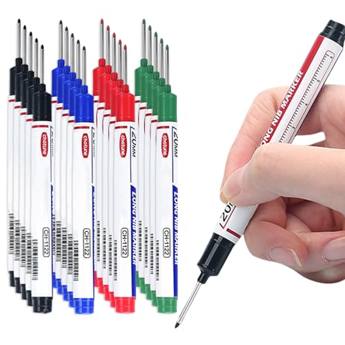 20 stycken djupa hålmarkörer, borrhålsmarkörer, permanent markör, extra lång spetsspetshålmarkering, markeringspenna för kartong, glas, trä, väggar, betongplattor (svart, röd, blå, grön)