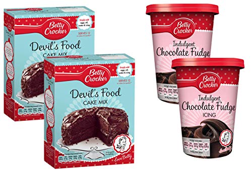 Betty Crocker Devils mat choklad kaka mix och överseende choklad fud glasyr bunt 4-pack