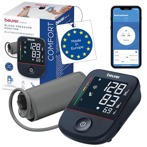 Beurer BM 64 blodtrycksmätare för överarm, detektering av förmaksflimmer (AFib), förebygga stroke, appanslutning, patentskyddad viloindikator, manschett för överarmar på 22–42 cm