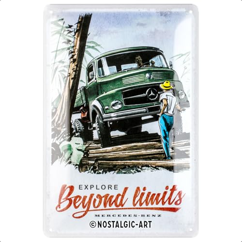 Nostalgic-Art Plåtskylt i retrostil, Daimler Truck – Beyond limits – Presentidé för biltillbehörsfantaster, av metall, Deko vintagedesign, 20 x 30 cm