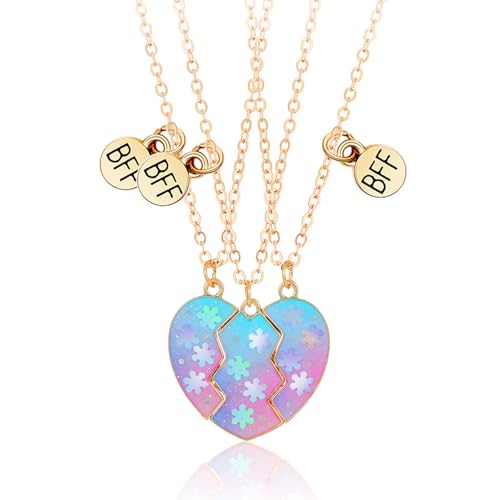 BFF halsband för 3 trasiga hjärthalsband, perfekt vänskapspresent för flickor, Dimensione del cuore intero: 2.9cm*2.5cm, Zink, Ej