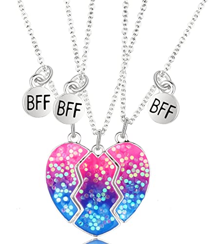 Cosysparks BFF-halsband för 3 flickor, 3 vänskapshalsband för 3 flickor, magnetiskt hjärta, vänskapshalsband, matchande halsband för bästa vänner, smyckesgåva för flickor (rosa + blå + lila)