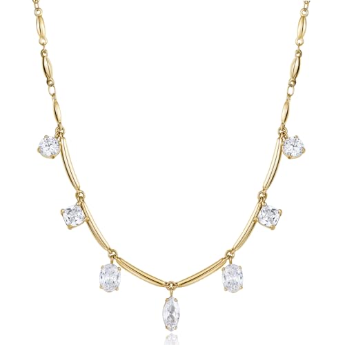 Kristall halvmåne hänge halsband sterlingsilver S925 läckert kubisk zirkonia diamant stjärna berlock justerbar kedja halsband halsband fina smycken gåvor för kvinnor flickor BFF