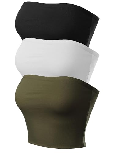 MixMatchy damer sexiga tubtoppar crop toppar axelbandslös basic rygglös bandeau-bh sommar 2024, 3-pack - svart/vit/mörk olivgrön, M