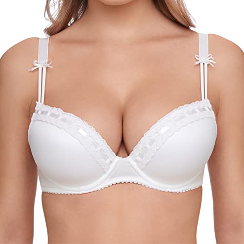 SUSA Wiesn-magi Dirndl-bh bygel-push-up bh med extra kupor, bh för en hisnande deco med smal spets med satinband, Vit (003), 70A