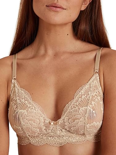 DOBREVA Push Up Bh För Kvinnor Trådlös Vadderad Utan Bygel Braletter Spets Plunge Bh Beige 70A
