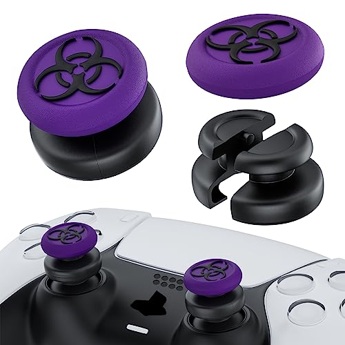 PlayRealm NO Falling Off Thumbstick Extender & Silikongrepp 2 set för PS5 och PS4-kontroll (BH lila)