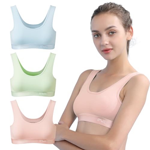 INNERSY bustier flicka bomull sport bh utan bygel bralette barn till tonåringar 6–16 år 3-pack, Ljusrosa/ljusblå/ljusgrön, 7-8 år