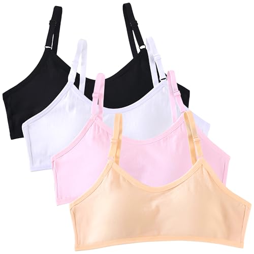Baogaier 4-pack tonåring, flickor, bh, bomull, andas, sport, träning, underkläder med fast, vadderad och justerbar axelrem, bralette, topp, bustier för 10–16 år, barn, tweens, Stil B, En Storlek