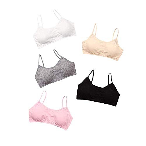 ECOSWAY Unga flickor bomull barn condole bälte sport behåar, puberty tonåring andningsbara underkläder crop sport träning bh ~ 4-pack, lämplig 8-14 år, Mixed Color, en storlek