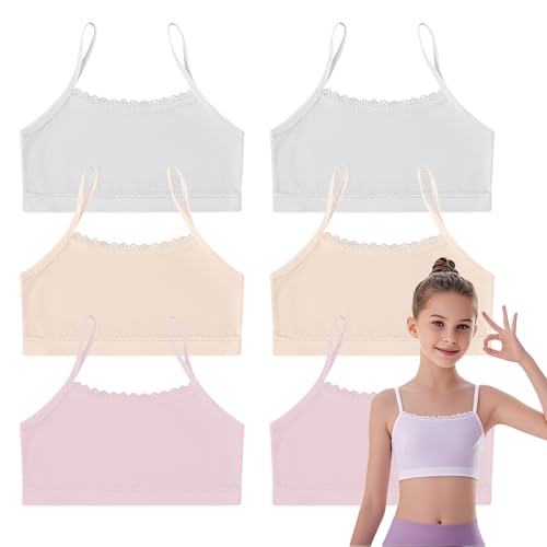 JYCY 6 st flickor magtröjor ålder 7-16 flickor bh toppar barn behåar flickor sport första BH för flickor träning behåar för flickor tonårsbralettes vita barn magtoppar bomull träning beskära, Typ-a