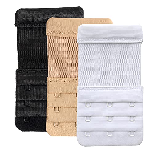 Yolev 3 delar dam BH-förlängare dam stretchig BH förlängningsrem 3 krokar 3 rader elastisk BH band krok, Svart/vit/hudfärg, M