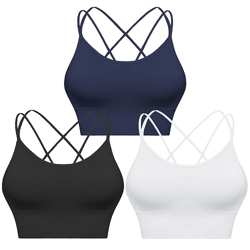 Sykooria Sport-BH dam, vadderad bustier, dambehå utan bygel, spagettiband, korsad rygg, design, push up bh, sportbh, topp för yoga, fitness, A-svart + vit + mörkblå, M