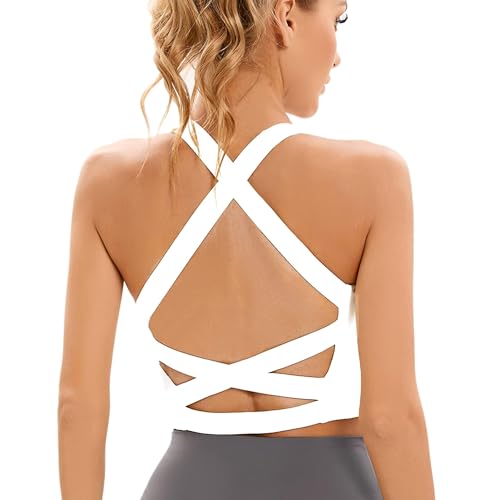 Sport-BH för kvinnor sexig korsad rygg vadderad sport-bh med band yoga för kvinnor träningslinne toppar