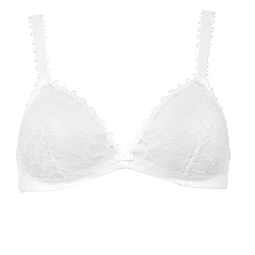 VIVISENCE BH dam med bygel spets topp bh stora storlekar mjuk bh tyll nät spets rosett kupor 1044, Vit, 75E