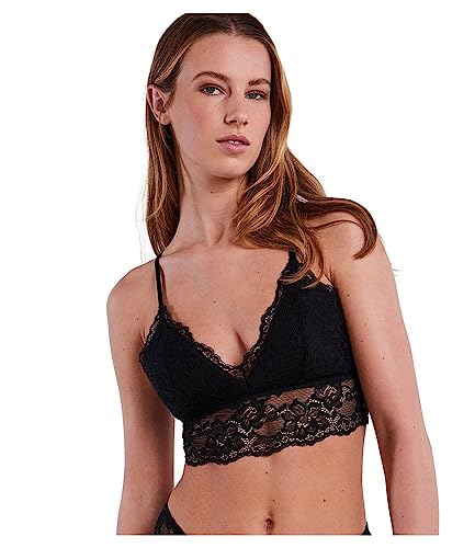 SHEKINI Dam flicka bh med stängning fram, spets racerback spetsbehå triangel bralette vadderad underklädesplagg bustier crop underkläder bygellös bralette topp, svart, XL