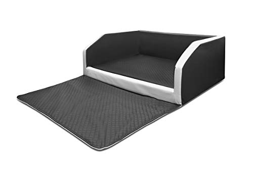 Mayaadi Home Hundbädd bagageutrymme säng resa duo bilhund säng skyddande filt konst läder bilstol matta svart-vit L (100 x 80 x 38 cm)