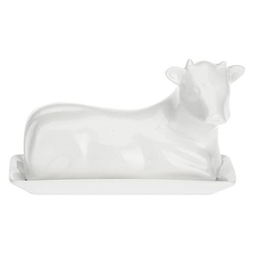 la Porcellana Mucchine ko smör skål presentask, porslin, vit, 19 x 10,5 x 11,5 cm