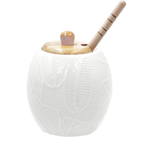 LA PORCELLANA BIANCA - Blad honungsburk med servihonung, 250 ml, porslin och trä