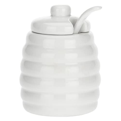 LA PORCELLANA BIANCA Randig honungsburk med servihonung, 250 ml, porslin och trä