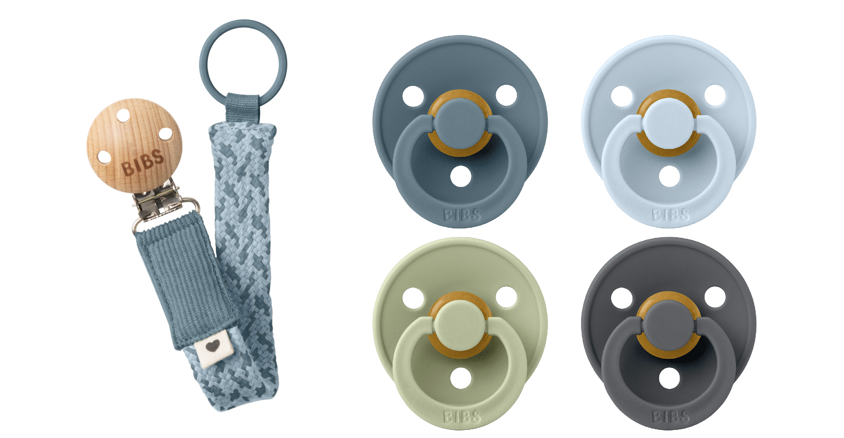 BIBS - Pacifier Colour 4 PACK - Petrol/Sage/Baby Blue/Iron - Size 2 + Pacifier Clip Braided - Petrol/Baby Blue - Onesize (Bundle)