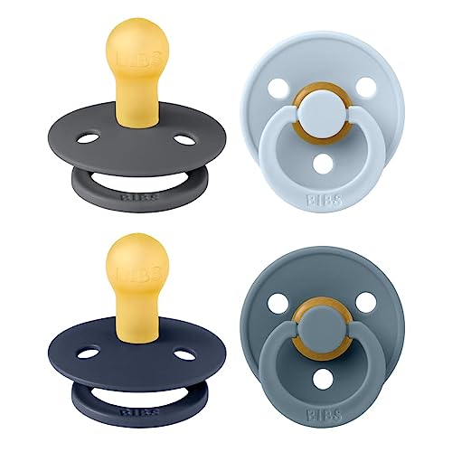 BIBS Colour Napp 4-pack, BPA-fri napp, Rund sugdel. Naturgummilatex, Tillverkat i Danmark/EU. Storlek 1 (paket med 4), Deep Space Mix